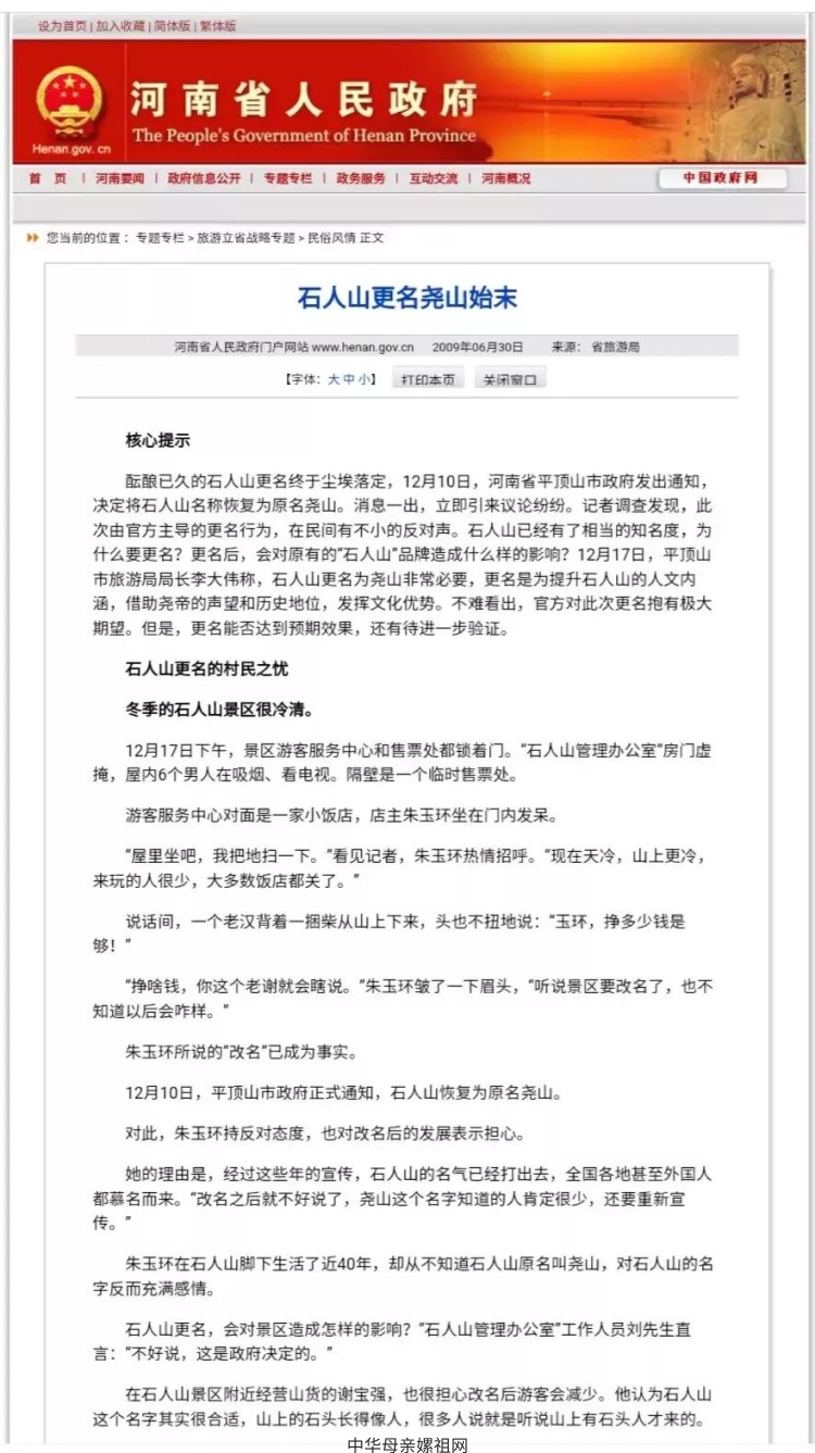 平顶山的石人山更名尧山,但真正的尧山在陕西