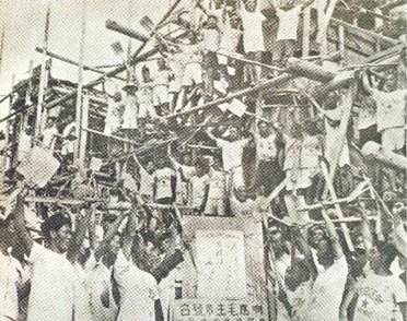 荆江分洪工程南闸工人在“红五月”竞赛中宣誓