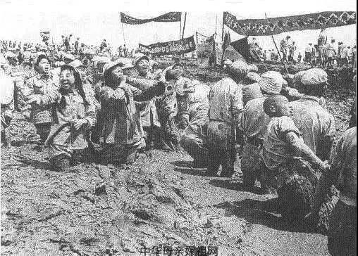 1952年汛前抢建荆江分洪工程。图为清淤现场