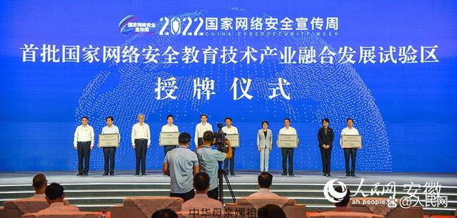 人民网合肥9月5日电(韩震震、李希蒙、王锐)9月5日上午,由中宣部、中央网信办、教育部、工信部、公安部、人民银行、广电总局、全国总工会、共青团中央、全国妇联等十部门共同举办的2022年国家网络安全宣传周在安徽合肥开幕,并对首批国家网络安全教育技术产业融合发展试验区进行授牌。