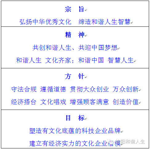 绵阳和谐人生文化科技公司于2016年8月成立于中国科技城,注册地址位于四川省绵阳市游仙经济实验区民生路6号。公司以“弘扬中华优秀文化,缔造和谐人生智慧”为宗旨,以大众国学,伦理经典《弟子规·人之规》为载体,贯彻“经济搭台,文化唱戏”的双赢理论,把文化发展与经济繁荣相互融合。通过互联网科技把消费体验升级,让消费过程成为社会价值链中的一个环,让顾客体验消费创造财富的乐趣,让消费者通过经营消费更创富。同时拉动内需,推动经济供给侧改革发展,实现国民经济可持续增长,保持优秀文化和民族经济的良性发展。