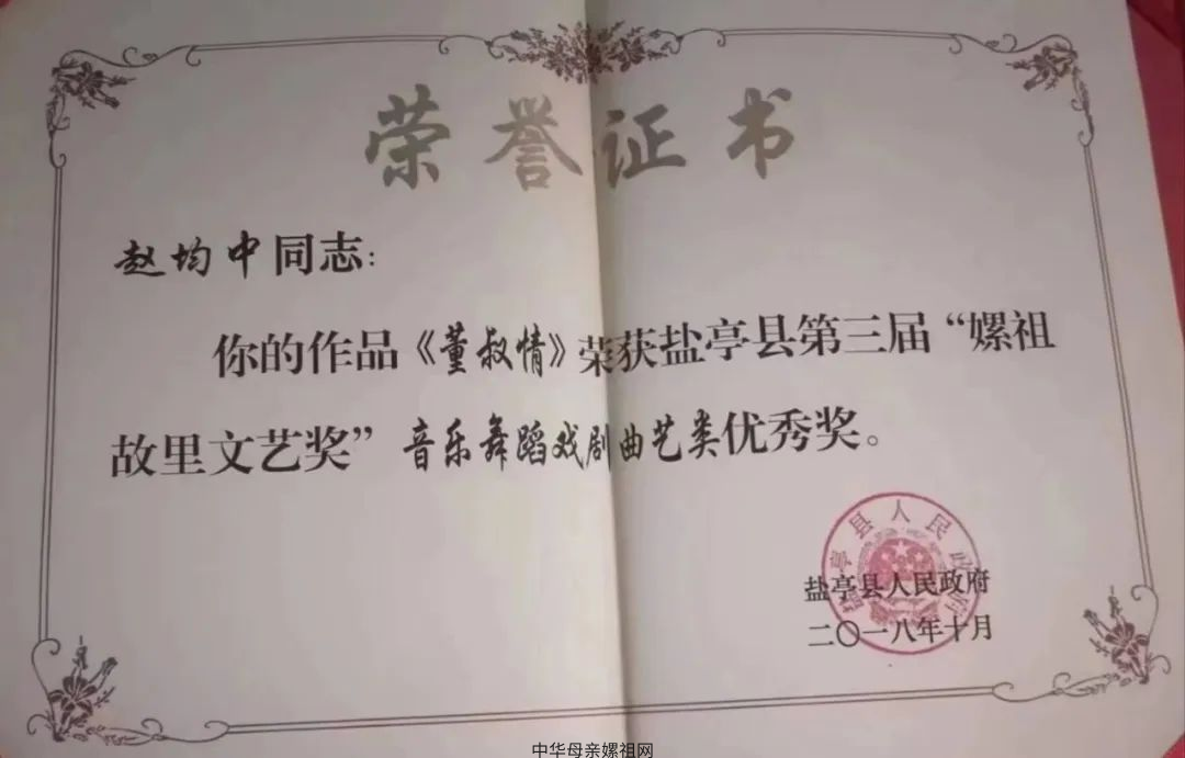 2016年10月15日,受盐亭县台办委托邀请20名海峡两岸三地祭祖嘉宾出席“酬蚕节祭祖活动暨2016中国(盐亭)国际首届女性微电影节”,受到县委领导们嘉奖。