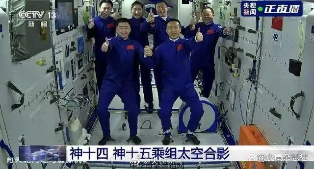 完成各项准备后,北京时间2022年11月30日7时33分,翘盼已久的神舟十四号航天员乘组顺利打开“家门”,热情欢迎远道而来的亲人入驻“天宫”。随后,“胜利会师”的两个航天员乘组,一起在中国人自己的“太空家园”里留下了一张足以载入史册的太空合影。