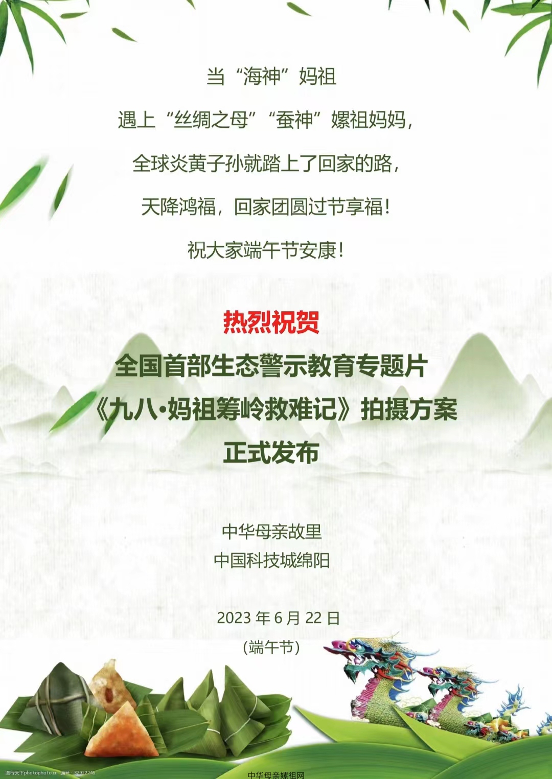 2023年6月22日,正值中华民族万家团圆的“端午节”,在中华母亲嫘祖故里——中国科技城绵阳,关于拍摄全国首部生态警示教育专题片《九八•妈祖筹岭救难记》的方案正式对外发布。 当“妈祖”遇上“嫘祖”,天降鸿福,全球炎黄子孙回家过节享福!