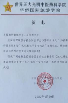 谨以全国首部生态警示教育专题片《九八·妈祖筹岭救难记》献给纪念妈祖诞辰1063周年与福建建瓯人民战胜1998年“6•22”特大洪灾25周年,献给为此片不懈努力8年之久的“80后”湖南知名剧作家吴贤雕先生,以及无私奉献此片的所有爱心企业和爱心人士。