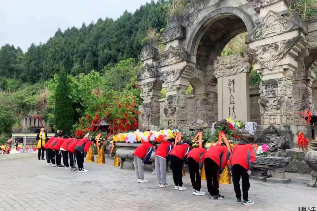 在嫘祖陵广场,县文广旅游局组织全体师生举行了祭祀嫘祖典礼。通过祭拜嫘祖,祈愿中华,共同传承“爱、美、和、善”的嫘祖文化,必将进一步升华嫘祖文化精神内涵,强化同根同源、同文同种认同,促进新一代炎黄子孙心灵契合。