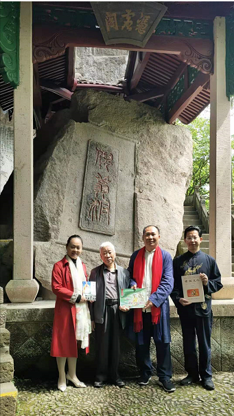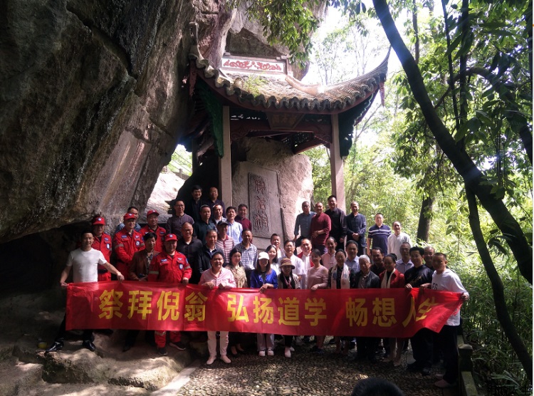 全体参加人员到倪翁洞祭拜倪翁。首先,曹公渡介绍了倪翁生平事迹,祭拜倪翁,弘扬道学,畅想人生。接着浙江大学道教研究中心研究员吴洁现场统一示范道学祭拜礼仪,并带领大家一起祭拜倪翁。最后全体人员合影留念。