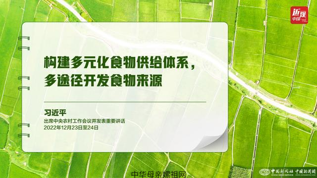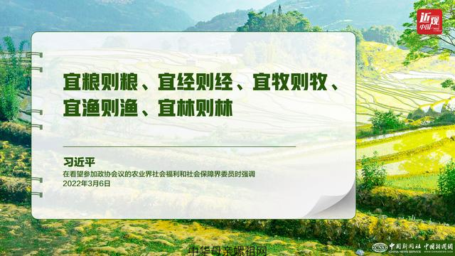 习近平指出,要树立大食物观,从更好满足人民美好生活需要出发,掌握人民群众食物结构变化趋势,在确保粮食供给的同时,保障肉类、蔬菜、水果、水产品等各类食物有效供给,缺了哪样也不行。要在保护好生态环境的前提下,从耕地资源向整个国土资源拓展,宜粮则粮、宜经则经、宜牧则牧、宜渔则渔、宜林则林,形成同市场需求相适应、同资源环境承载力相匹配的现代农业生产结构和区域布局。