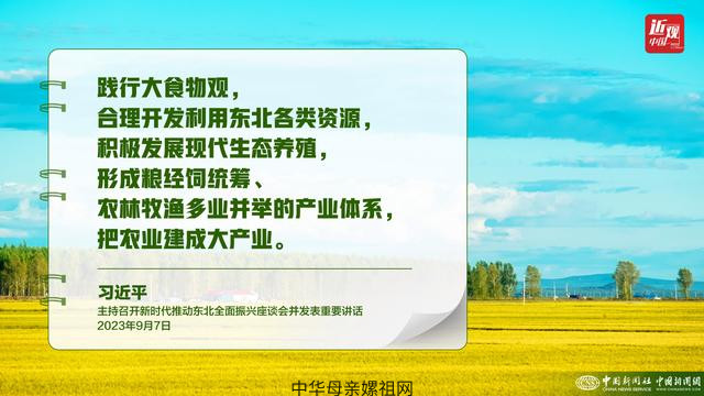 习近平指出,要以发展现代化大农业为主攻方向,加快推进农业农村现代化。践行大食物观,合理开发利用东北各类资源,积极发展现代生态养殖,形成粮经饲统筹、农林牧渔多业并举的产业体系,把农业建成大产业。协同推进农产品初加工和精深加工,延伸产业链、提升价值链,拓展农业发展空间,促进农业增效、农民增收。