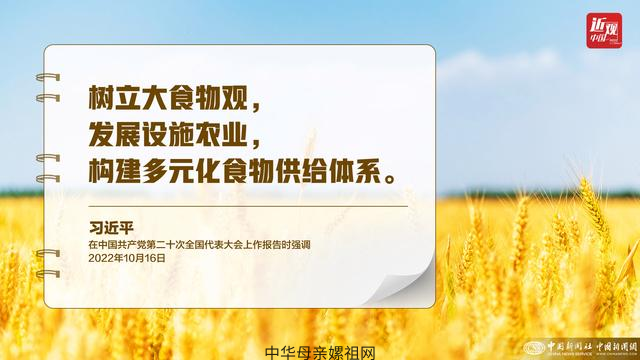 习近平在报告中强调,全方位夯实粮食安全根基,全面落实粮食安全党政同责,牢牢守住十八亿亩耕地红线,逐步把永久基本农田全部建成高标准农田,深入实施种业振兴行动,强化农业科技和装备支撑,健全种粮农民收益保障机制和主产区利益补偿机制,确保中国人的饭碗牢牢端在自己手中。树立大食物观,发展设施农业,构建多元化食物供给体系。发展乡村特色产业,拓宽农民增收致富渠道。