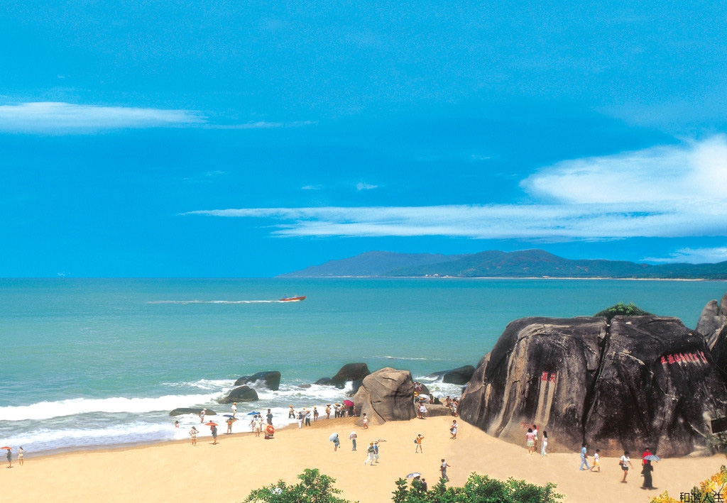 三亚天涯海角天涯海角,是指位于三亚市西郊23公里处,天涯海角风景区总体规划陆地面积10.4平方公里,海域面积6平方公里,背负马岭山,面向茫茫大海。这里海水澄碧, 烟波浩瀚,帆影点点,椰林婆娑,奇石林立水天一色。海湾沙滩上大小百块石耸立,“天涯”、“海角”和“南天一柱”巨石突兀其间,昂首天外,峥嵘壮观。
