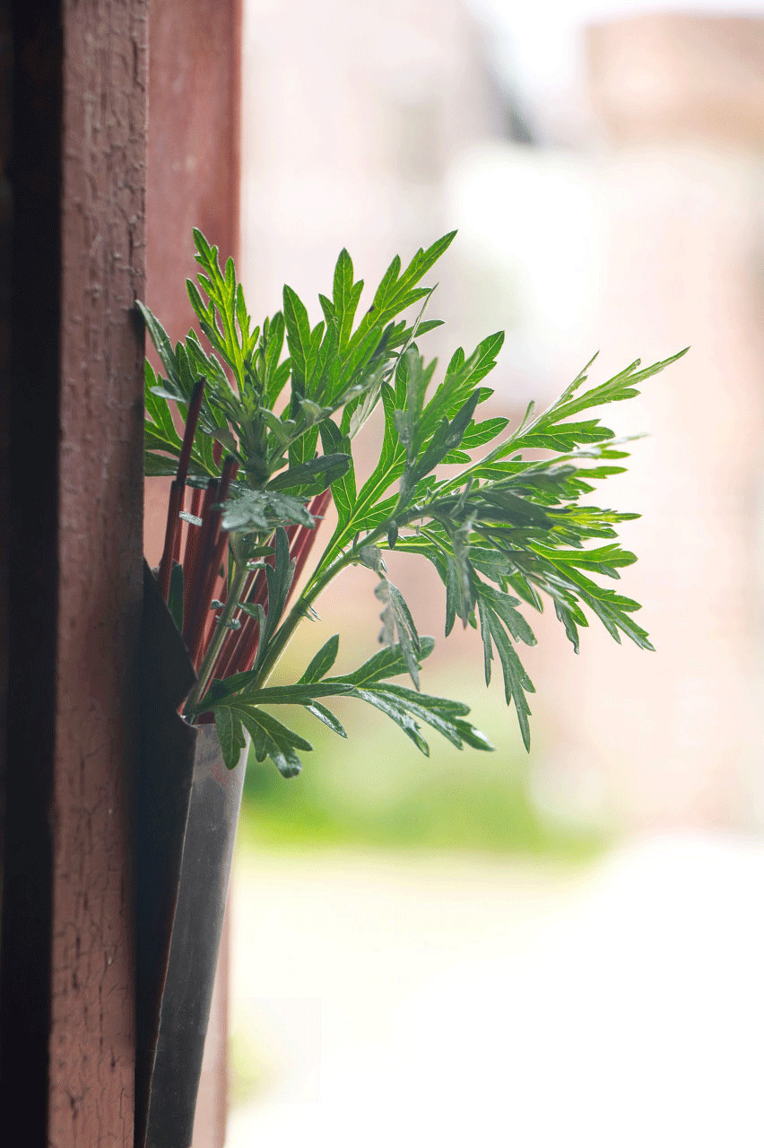 艾、菖蒲和蒜被称为“端午三友”,又被称为“三种武器”,古人认为可以退蛇、虫、病菌,斩除妖魔。有地方端午节在门口挂艾草、菖蒲(蒲剑)或石榴、胡蒜。通常将艾、榕、菖蒲用红纸绑成一束,然后插或悬在门上。