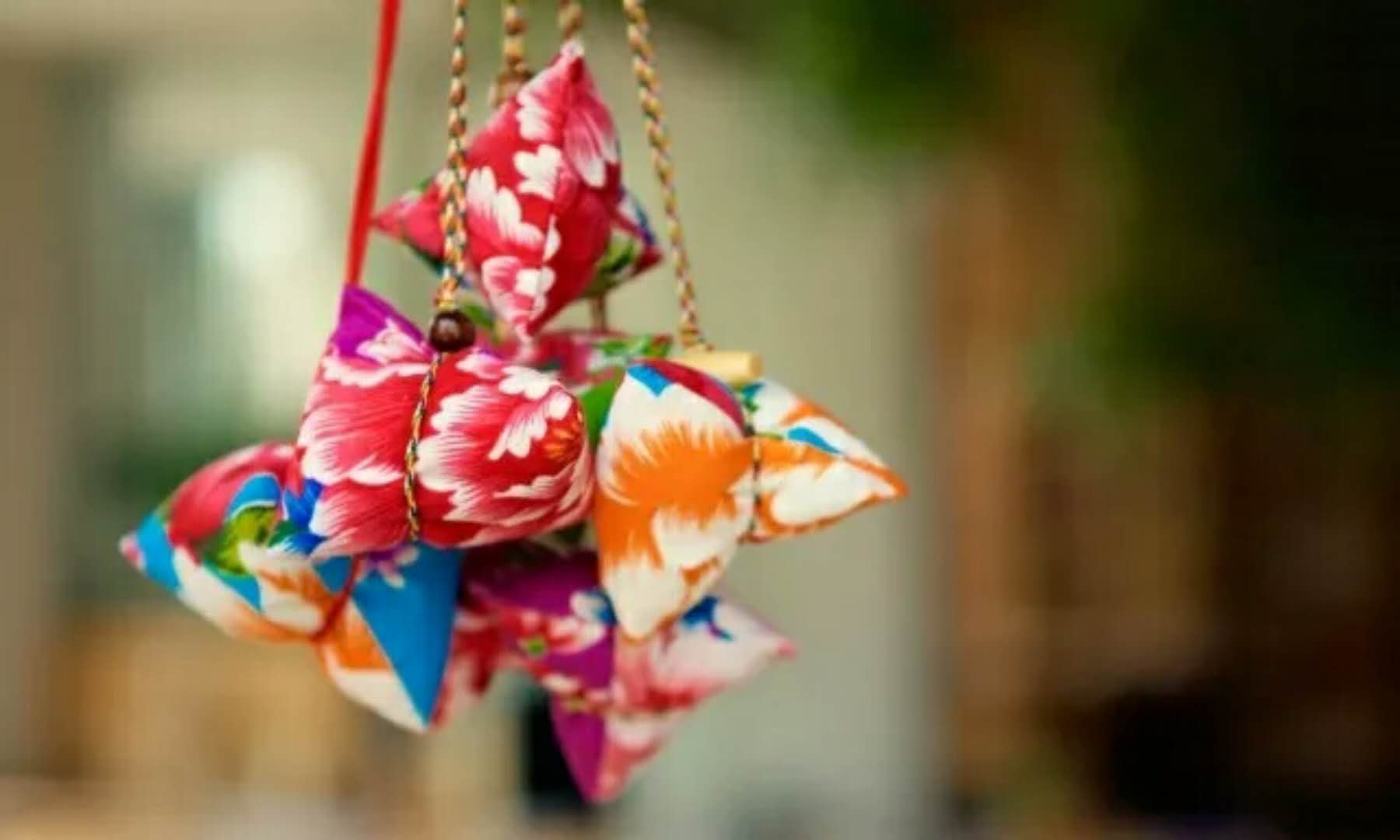 佩香囊。里面有朱砂、雄黄和芳香开窍的中草药,外面用五彩缤纷的丝布包起来,再用五色丝线结成一串,据说有驱虫、避瘟和防病的功能。