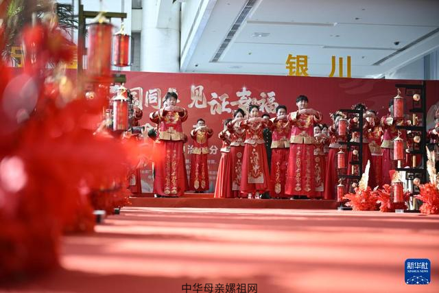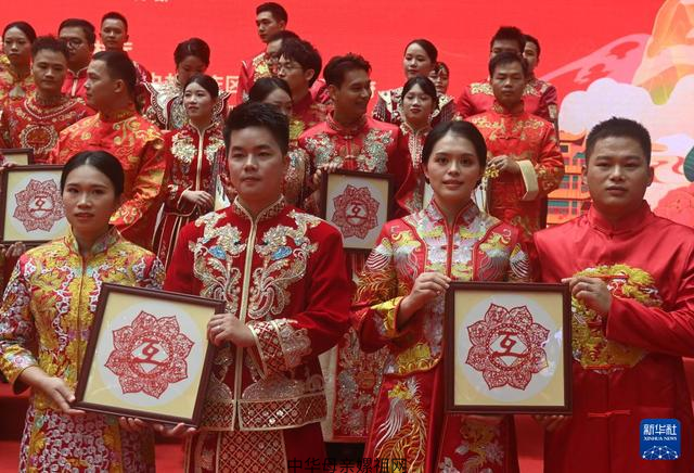 各会场精彩纷呈,广东广州设置婚俗文化展,把代表广府婚俗历史文化变迁的喜文化纳入展陈,展示婚俗礼仪;福建福州邀请6对台胞新人参加,成为深化两岸情感融合的有力印证;重庆将婚礼向婚恋延展,现场邀请未婚青年观礼;陕西西安新人们身着唐制婚服,穿过六国元首共植的友谊树,在中国-中亚峰会的主会场许下相守誓言......各地纷纷将优秀传统文化、移风易俗等家庭文明建设内容融入集体婚礼环节,以中式婚礼弘扬婚事新办简办新风貌。
