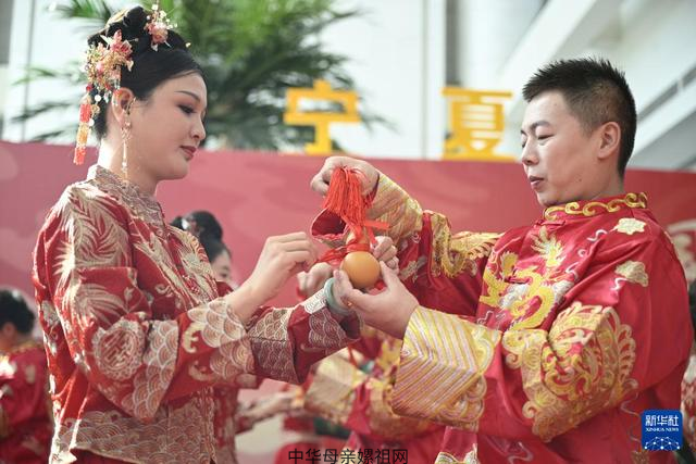 9月22日,在宁夏银川市,新人在“家国同庆 见证幸福”2024年全国万人集体婚礼宁夏分会场行合卺礼。新华社记者 王鹏 摄