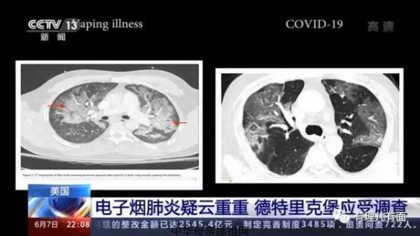 2019年7月起,美国威斯康辛州等多州爆发所谓的“电子烟肺炎”,由于患者肺部出现白化现象,也被称为“白肺病”。而“白肺病”的症状,与新冠感染后的肺部病变极其相似。