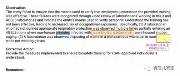 而根据美媒报道,就是这种极高危实验室,工作人员却在没有进行呼吸保护的情况下多次进入一间实验室,而室内其他人正在对非人灵长类动物进行手术,该违规行为导致实验人员呼吸系统直接暴露于实验动物的气溶胶中。