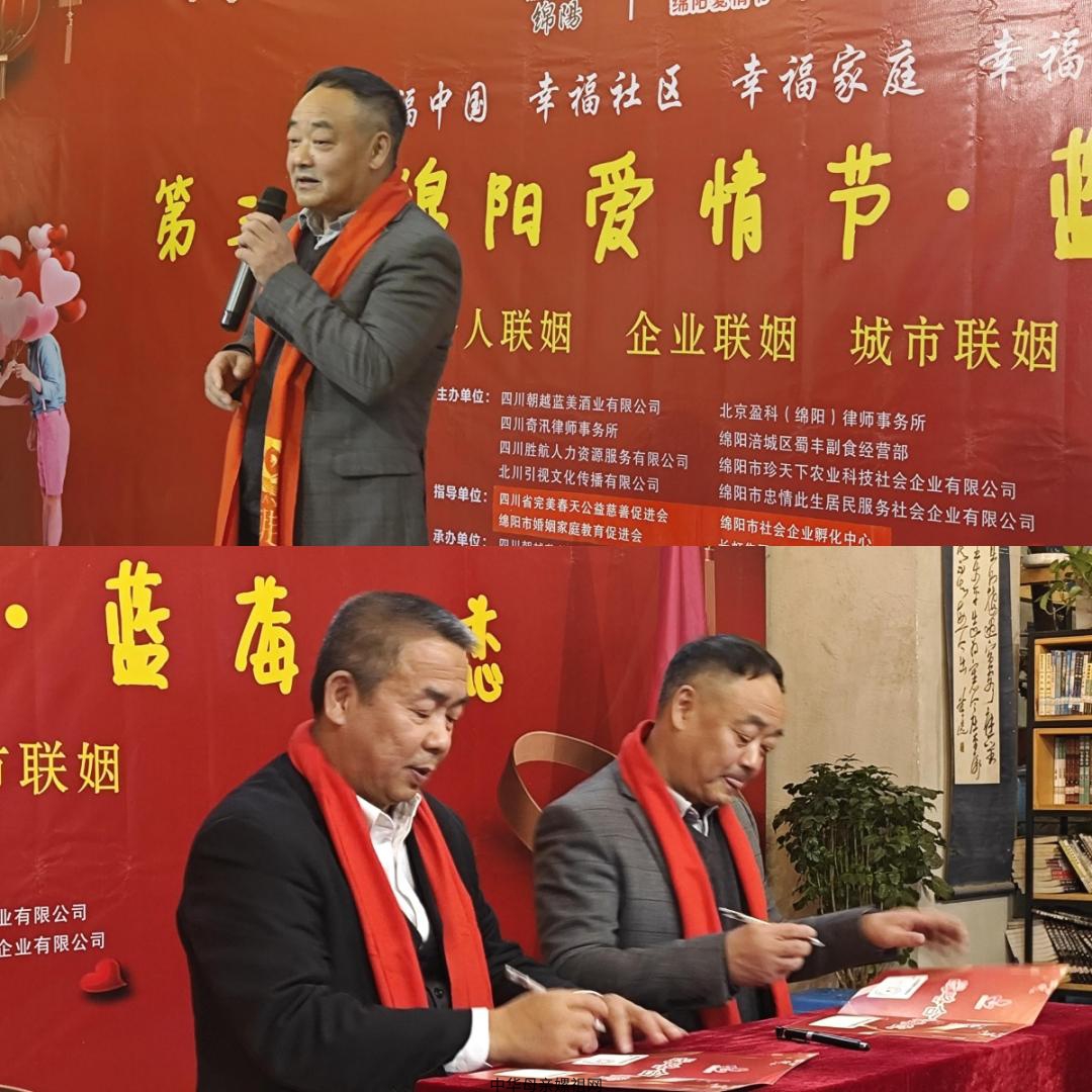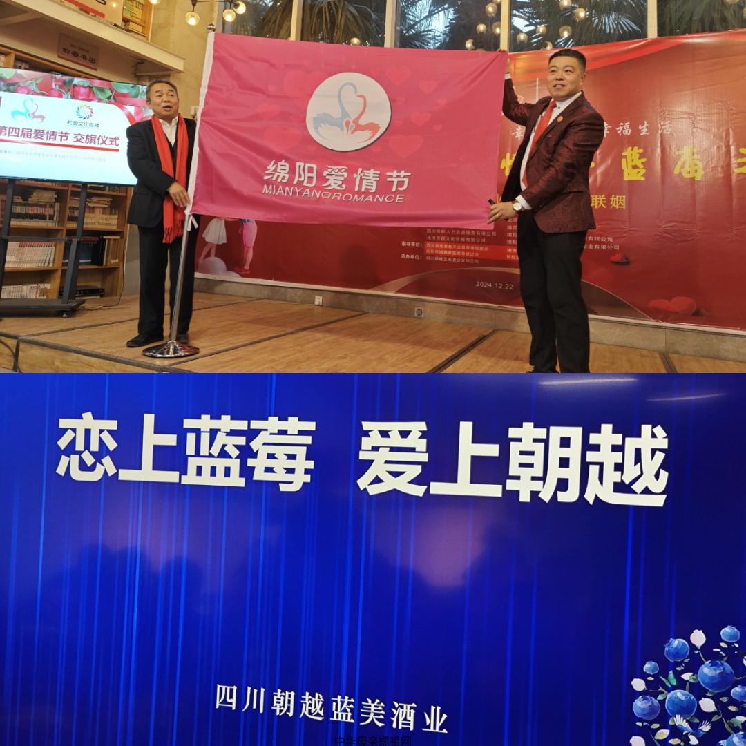 2024年12 月 22 日,一场浪漫与机遇交织的盛会 —— 第三届绵阳「爱情节」“蓝莓之恋”在此盛大开启 。此次活动的指导是四川完美春天公益慈善促进会、绵阳市婚姻家庭教育促进会、绵阳市社会企业孵化中心、长虹集团佳虹公司工会等,北京盈科(绵阳)律师事务所、四川奇汛律师事务所、四川胜航人力资源服务有限公司、绵阳市珍天下农业科技社会企业有限公司、绵阳市钟情此生居民服务社会企业有限公司、北川引视文化传播有限公司、绵阳涪城区蜀丰副食经营部等为主办单位,第三届绵阳「爱情节」由四川朝越蓝美酒业有限公司负责具体承办。活动突出“幸福中国 幸福社区 幸福家庭 幸福生活”旨在打造一场别具一格的【爱情】与【商业】交流盛宴。马来西亚槟城婚庆专业协会会长刘劲祥先生专门发来视频祝贺第三届绵阳爱情节开幕。
