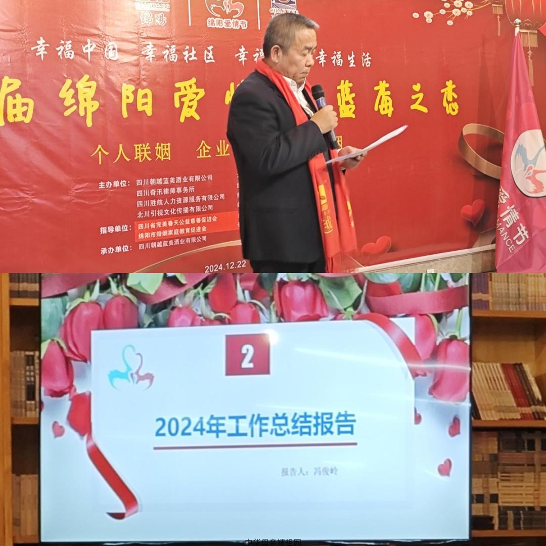活动,现场「爱情节」组委会冯俊岭先生作了「爱情节」《2024 工作总结报告》。他指出:从2022年至2023年已连续两年举办「爱情节」系列活动,今年是第三届「爱情节」。在此,有必要对「爱情节」特别是2024年主要工作进行回顾和总结,绵阳「爱情节」暨【爱情驿站】发起联盟成员单位要肯定成绩、正视不足,提振信心、聚合资源,让2025年「爱情节」暨【爱情驿站】各项工作开拓新思路、迎接新挑战、有所新作为、创造新业绩。