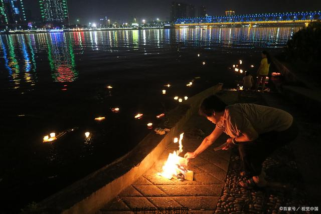 中元节点一盏灯,向先人叩拜,默默祷告。