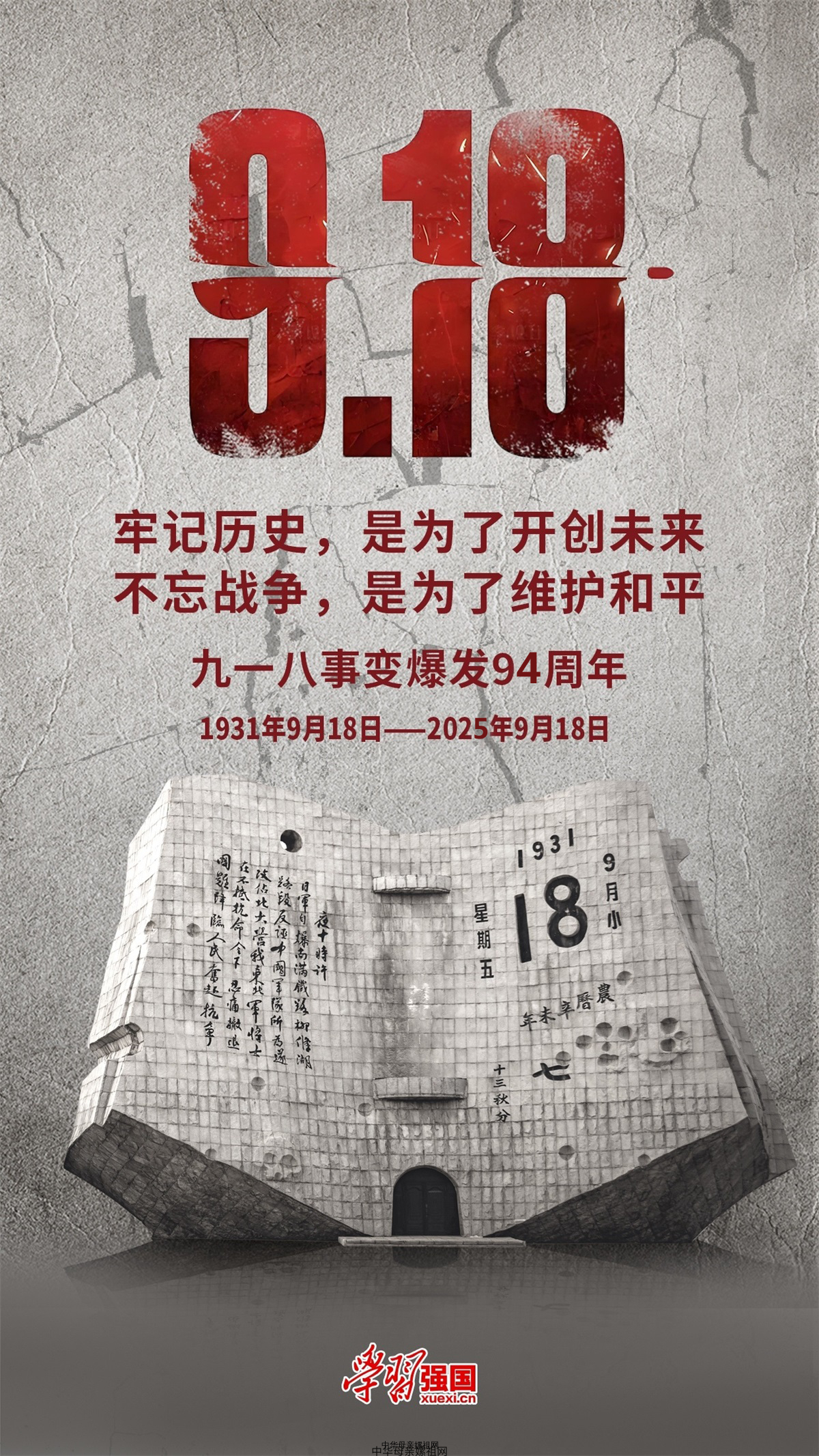 今天是公历2025年9月18日,农历八月十六,“九一八”事变爆发94周年纪念日,让我们铭记历史,勿忘国耻,缅怀英烈 ,振兴中华。坚决反制日本核污染水排海的反人类罪行!今年是九一八事变爆发94周年。94年不短,我们端起历史的望远镜能够更清晰地回望,获得更深沉的思考;94年不长,九一八就像矗立在历史长河中的记忆坐标,发出“安不忘危,治不忘乱”的警示。