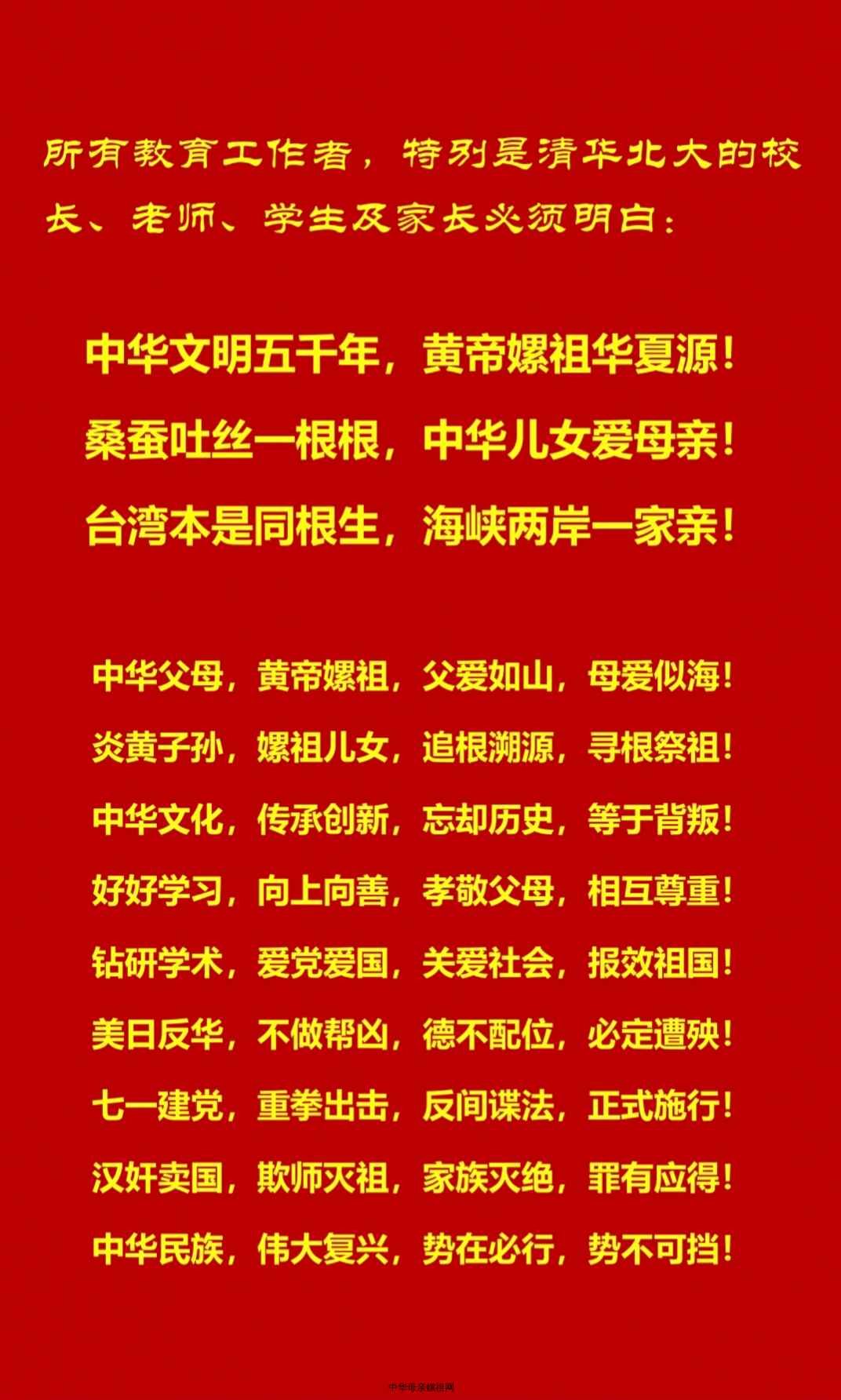 欢迎光临中华母亲嫘祖网!这是一个属于全球炎黄子孙、嫘祖儿女、中华同胞的网站。中华父母,黄帝嫘祖。父爱如山,母爱似海。炎黄子孙、嫘祖儿女。追根溯源,寻根祭祖。孝敬父母,抚育儿女。关爱社会,报效祖国。我们的宗旨是:弘扬中华文化,坚定文化自信,凝聚中国力量,缔造和谐人生,构建和谐社会,振兴民族经济,建设富强中国,实现民族复兴,维护世界和平,构建人类命运共同体!让我们弘扬中华母亲嫘祖文化,传承爱美和善嫘祖精神,凝聚全球炎黄子孙力量,实现中华民族伟大复兴!