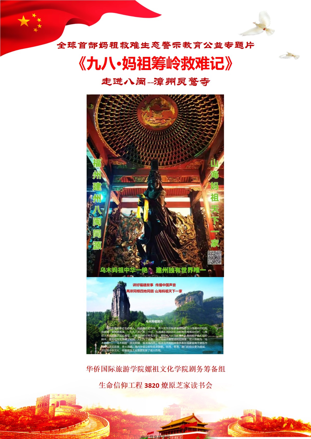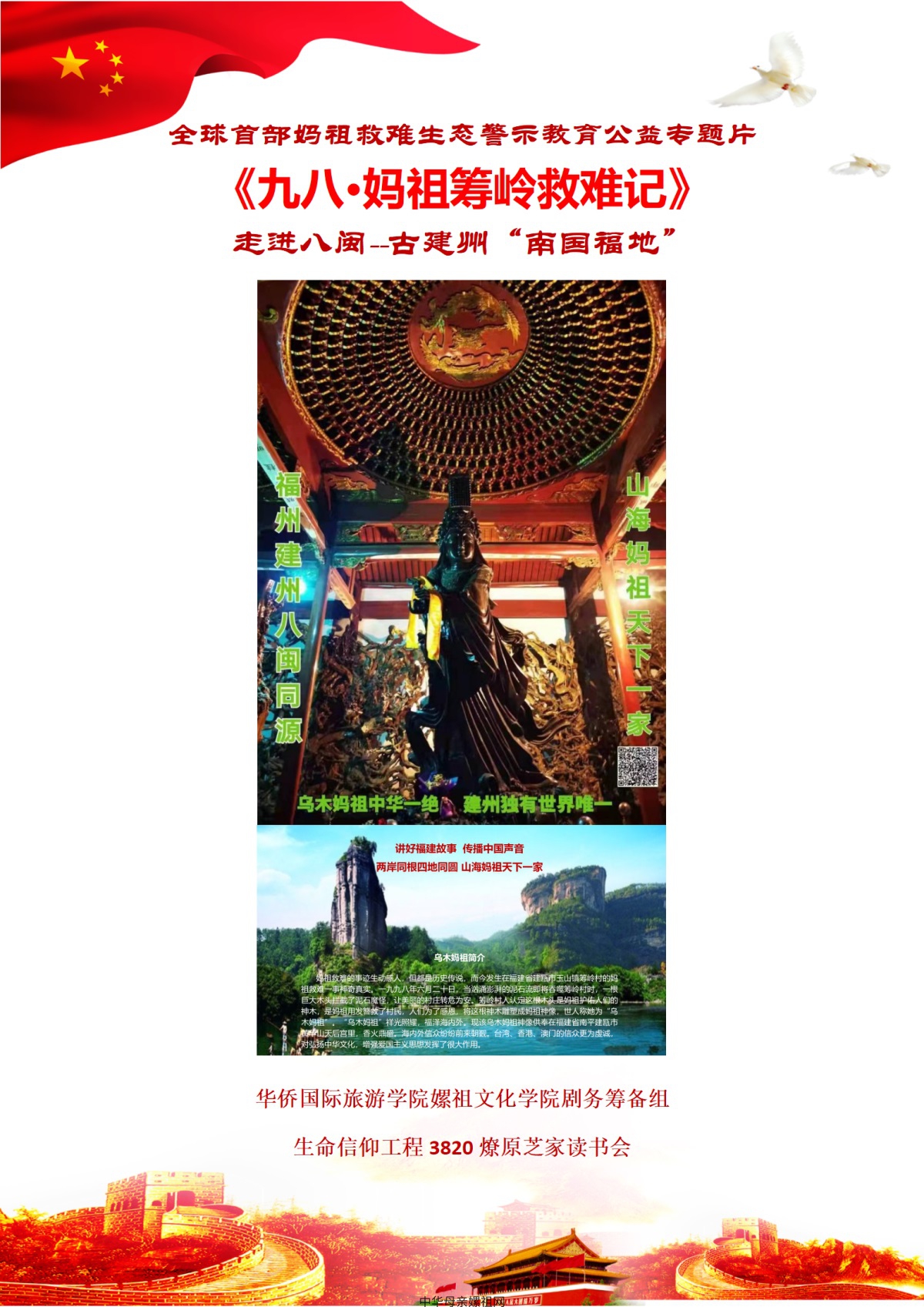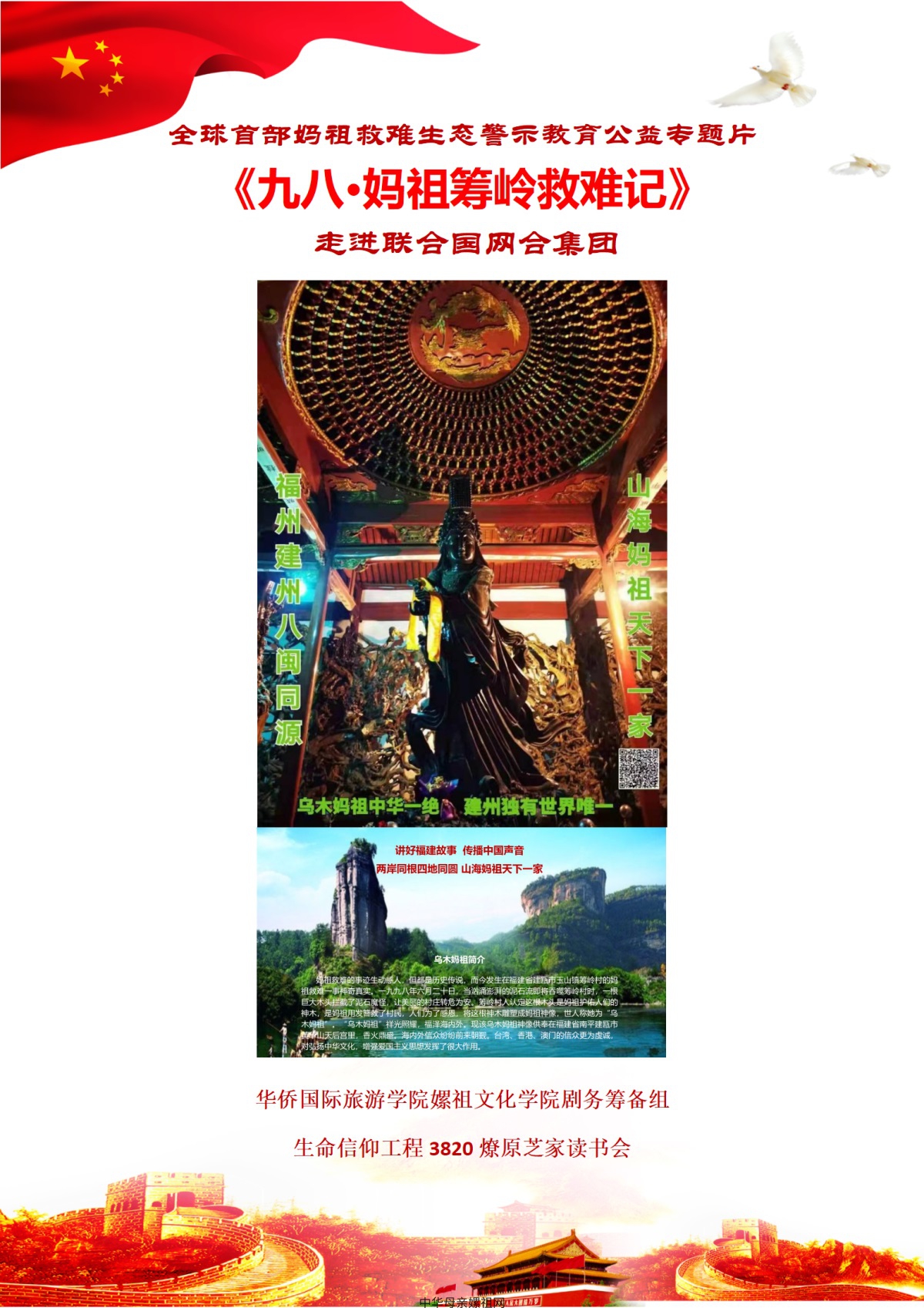 和谐人生中华母亲嫘祖网受两岸妈祖信众与世界生态爱好者呼吁,决定响应中央弘扬中华优秀传统文化的号召,满怀宣传妈祖文化的自觉性、积极性,自筹资金拍摄公益电视专题片《九八·妈祖筹岭救难记》。2021年6月16日,和谐人生中华母亲嫘祖网携手3820•燎原芝家课题组向中共福建省委统战部提交关于请求支持拍摄生态警示教育电视专题片《九八·妈祖筹岭救难记》的请示。拍摄该片的目的在于倡导生态文明、弘扬妈祖文化,促进两岸四地妈祖信众联谊与文化交流,把妈祖筹岭救难这一真实而又神奇的历史亮点推向世界,把乌木妈祖的光辉神像推向世界,让妈祖的光芒照耀到世界的每一个角落,把爱的雨露滋润到每个受苦受难的人们的心里。