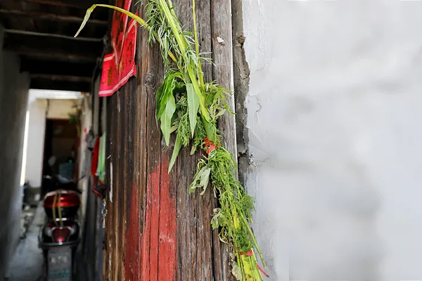 艾、菖蒲和蒜被称为“端午三友”,又被称为“三种武器”,古人认为可以退蛇、虫、病菌,斩除妖魔。有地方端午节在门口挂艾草、菖蒲(蒲剑)或石榴、胡蒜。通常将艾、榕、菖蒲用红纸绑成一束,然后插或悬在门上。